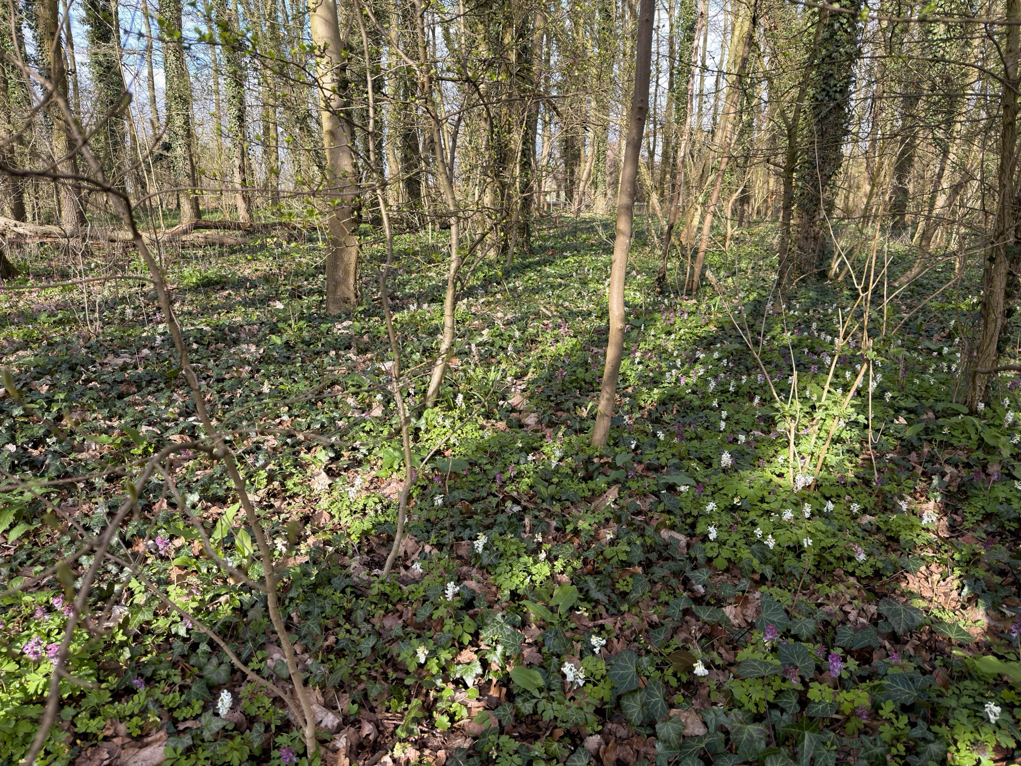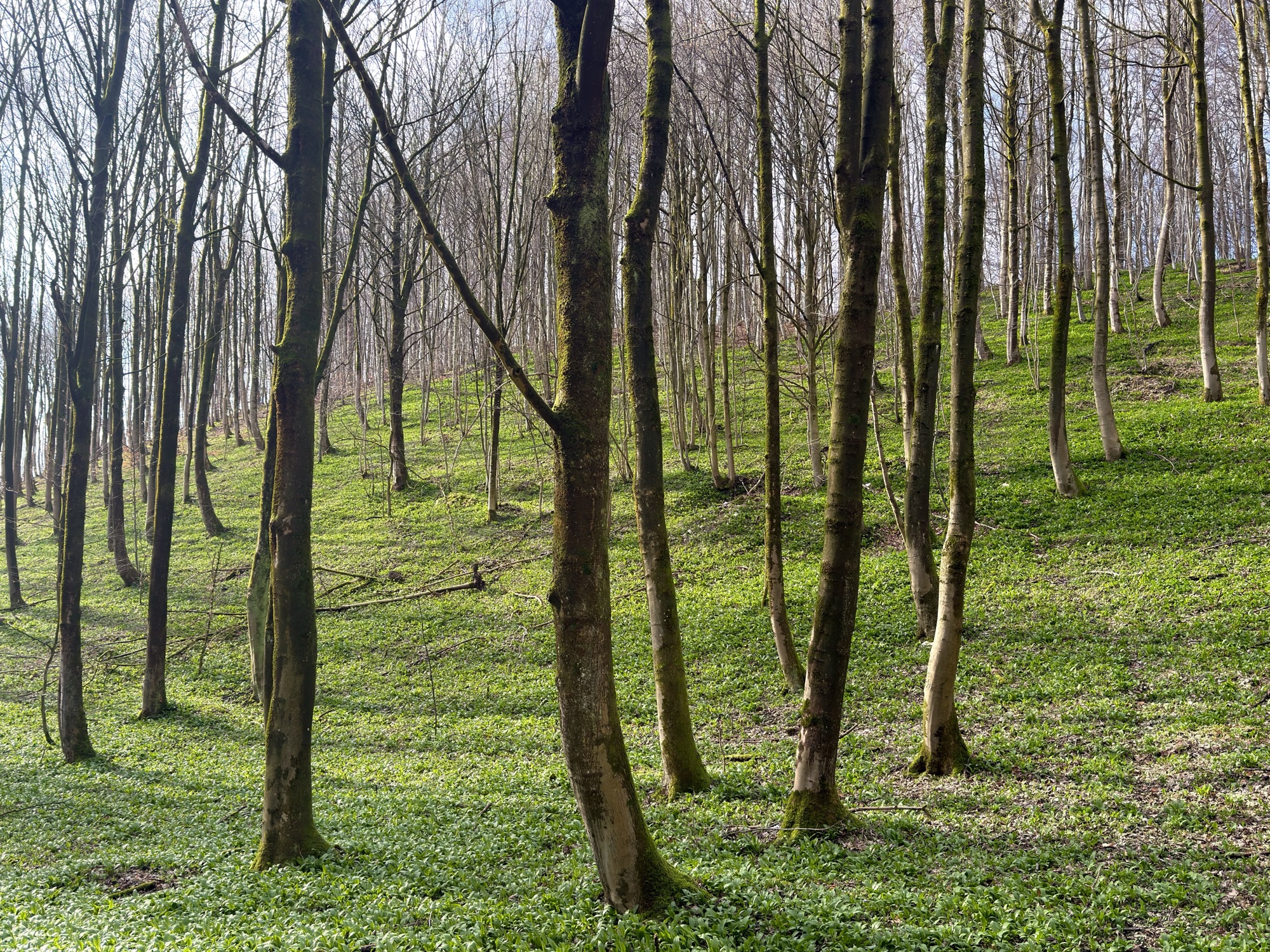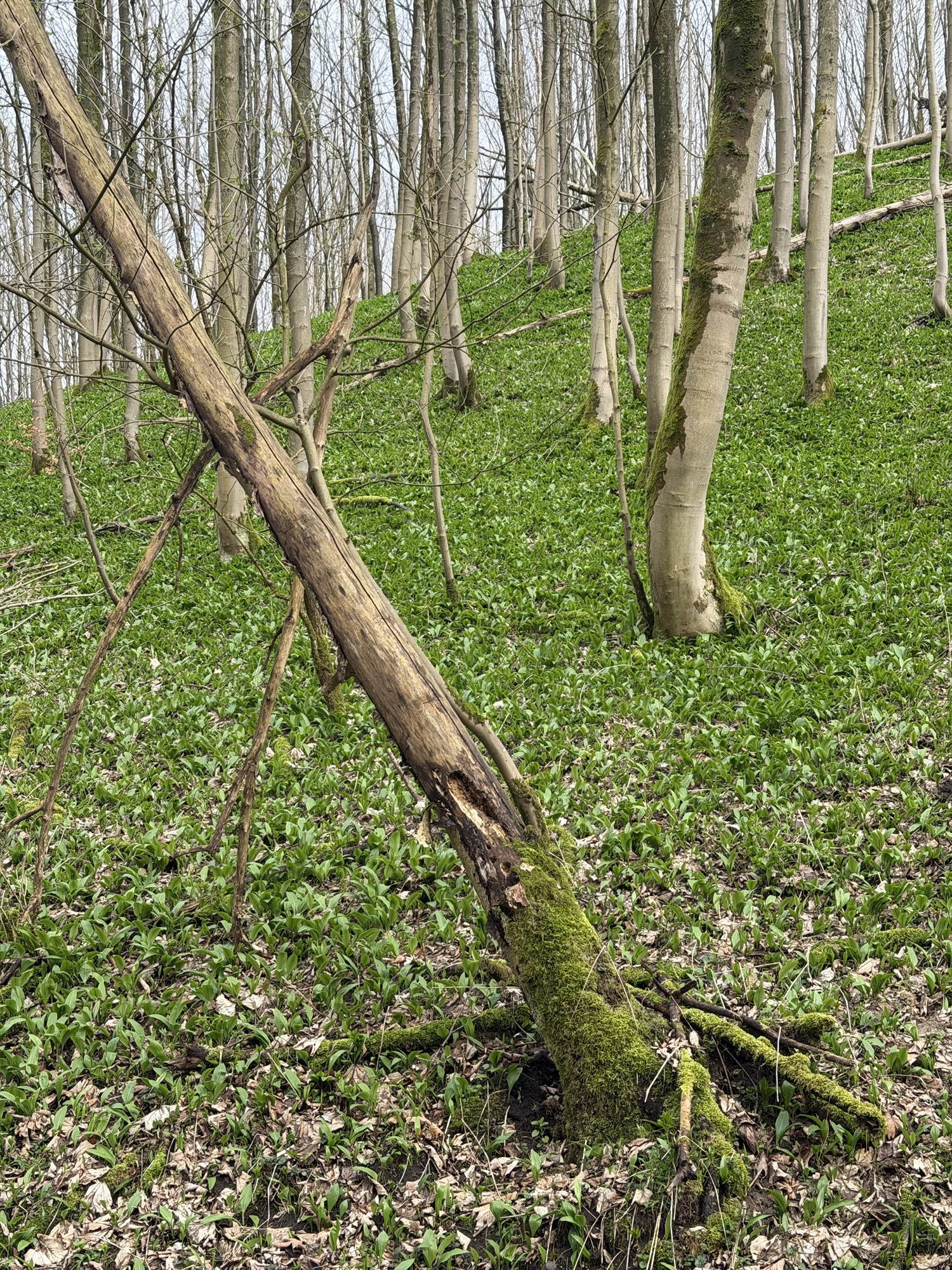 Während der #Lerchensporn im Hohlweg prächtig blüht, sind an den Hängen hoch im Langen Tal bislang nur sehr vereinzelt Sporne zu sehen. Noch weiter oben dominiert das Grün des #Bärlauch. #senneteutoegge