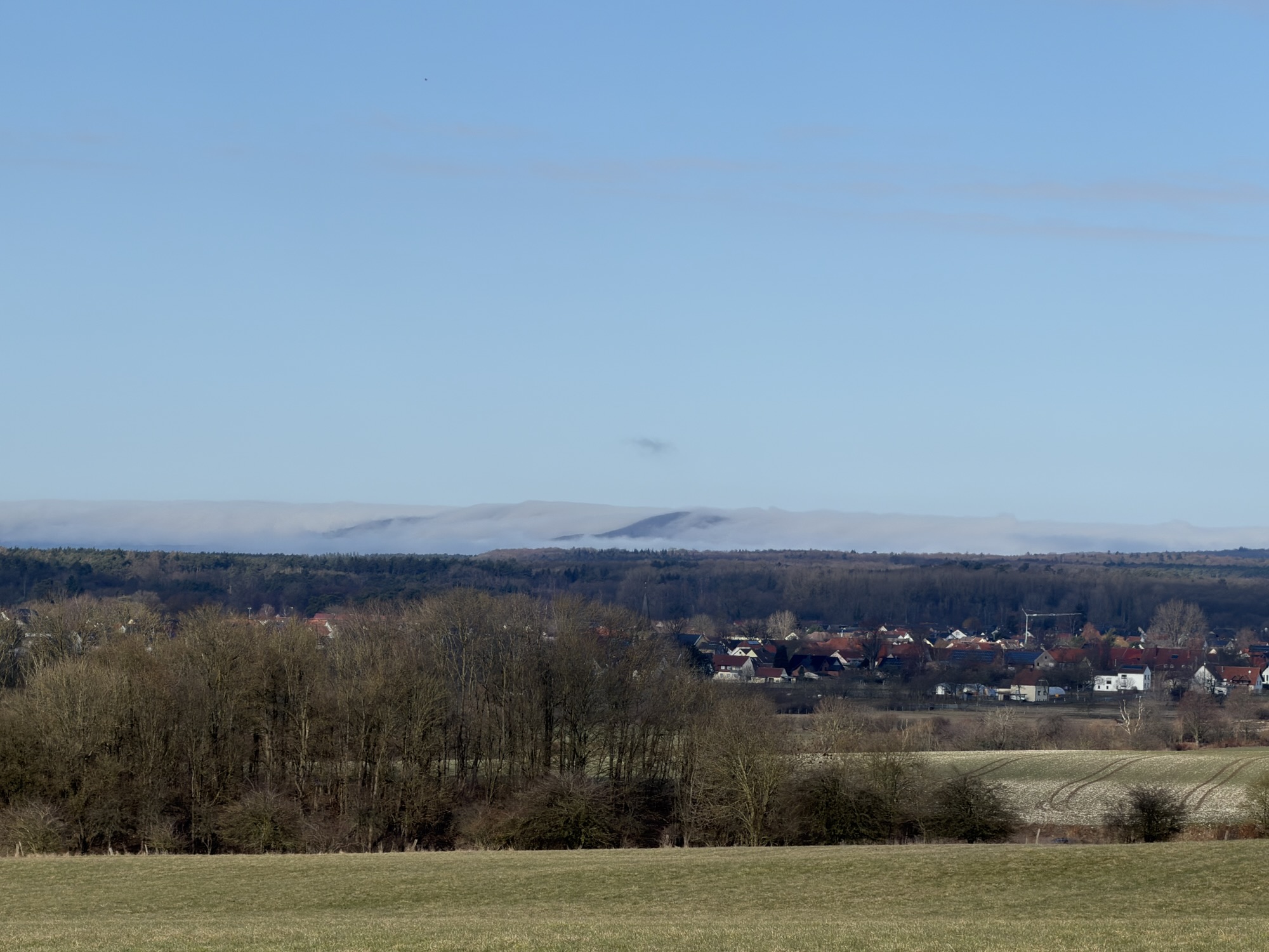 Wie einst die Gletscher der Saaleeiszeit schwappt der Nebel über die Stapelager Berge. Den #Bauerkamp kann der Nebel 🌫️ nicht überwinden und so bleibt es südlich des #meinTeuto sonnig ☀️. Auch schön im Satellitenbild zu erkennen. #senneteutoegge
